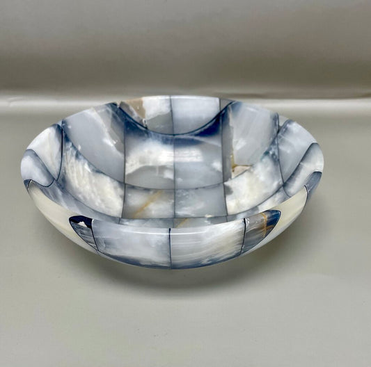 VINTAGE RARE WHITE BLUE ALABASTER STONE BOWL