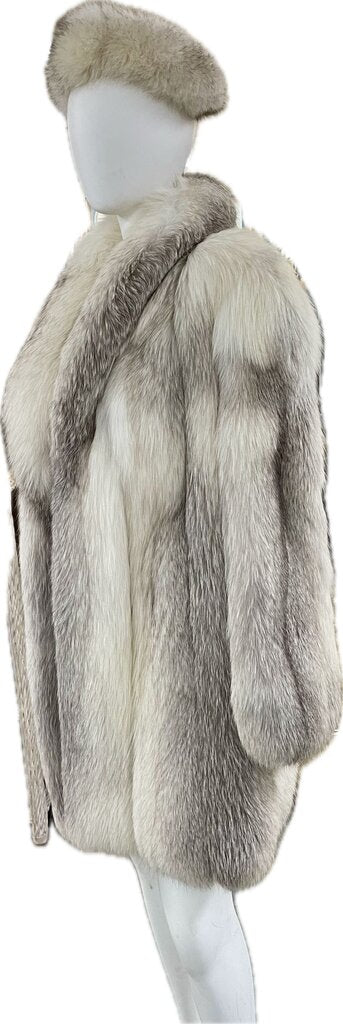 VINTAGE SAGA FOX FUR COAT SIZE MD WITH 100 PERCENT BEMBERG LINING WITH MATCHING HEADBAND