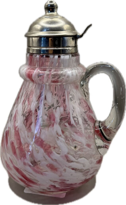 VINTAGE PINK AND WHITE GLASS SYRUP PITCHER