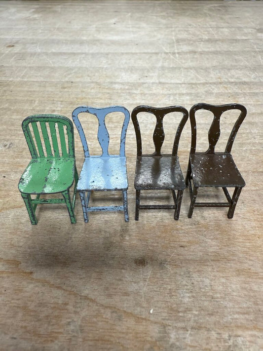 VINTAGE TOOTSIE TOY MINI CHAIRS AND LAMP AND BARCLAY PARK BENCH