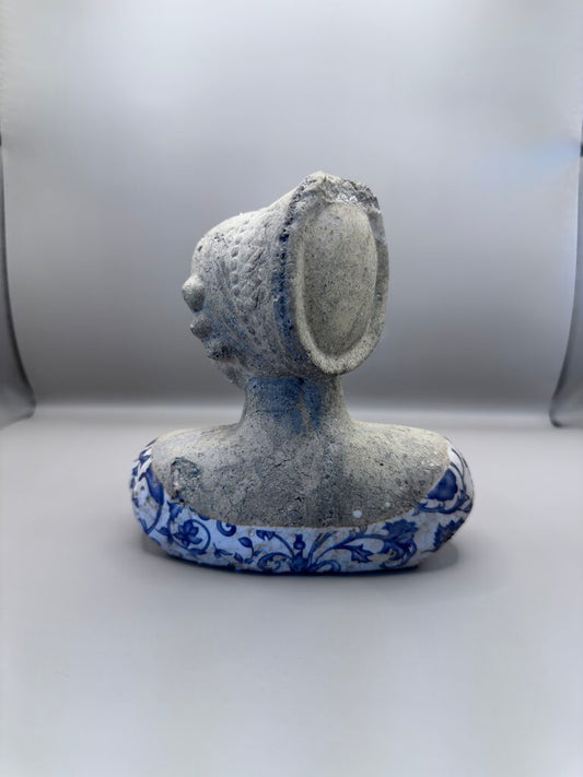 VINTAGE WHITE PORCELAIN FACE SCULPTURE ON LUCITE BASE