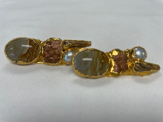 VINTAGE STONE COPPER AND PEARL EARRINGS