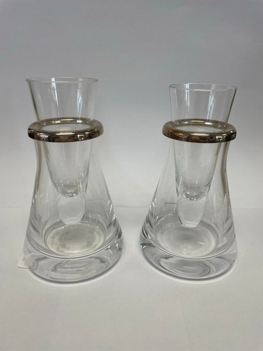 VINTAGE VODKA SHOT GLASSES WITH ICE DECANTERS WIOTH SILVER RIM SET OF 2