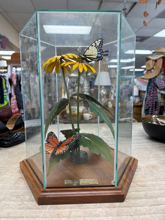 WOODEN FLOWER AND BUTTERFLY CARVED BY BARRY BLACK