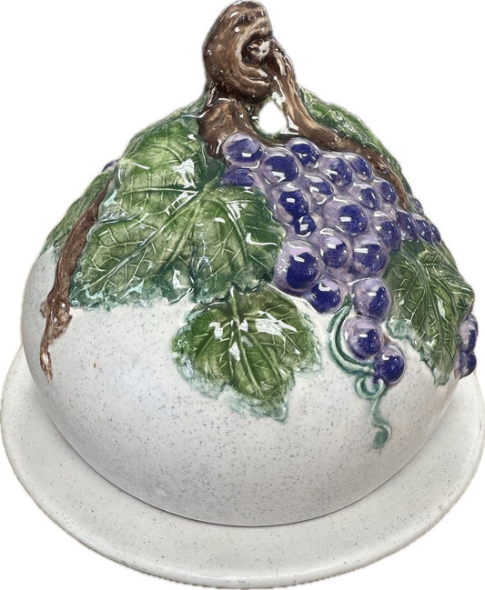 CERAMIC DOME CHEESE TRAY WITH GRAPES AND VINES