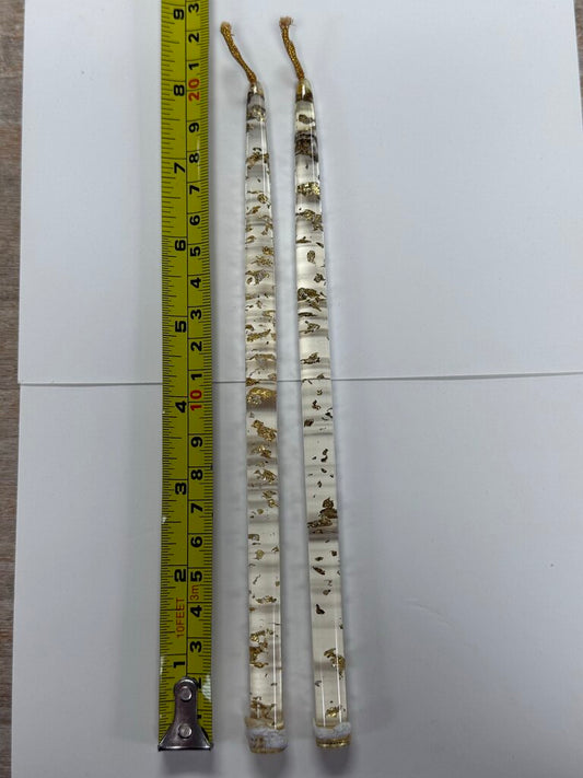 VINTAGE MCA LUCITE CLEAR GOLD LEAF FLAKES SET OF 2 CANDLE STICKS