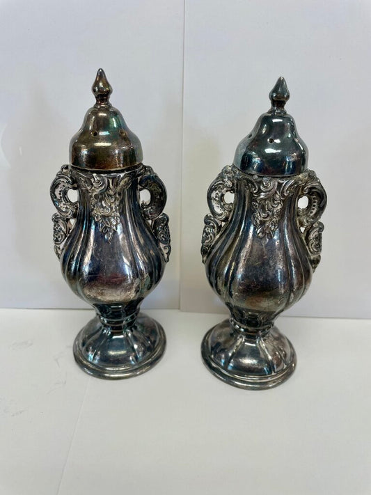 SILVER PLATED SALT AND PEPPER SHAKERS BAROQUE