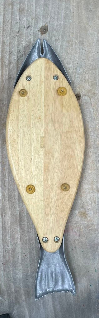 RARE LARGE WOOD METAL FISH CUTTING/SERVING BOARD 25"
