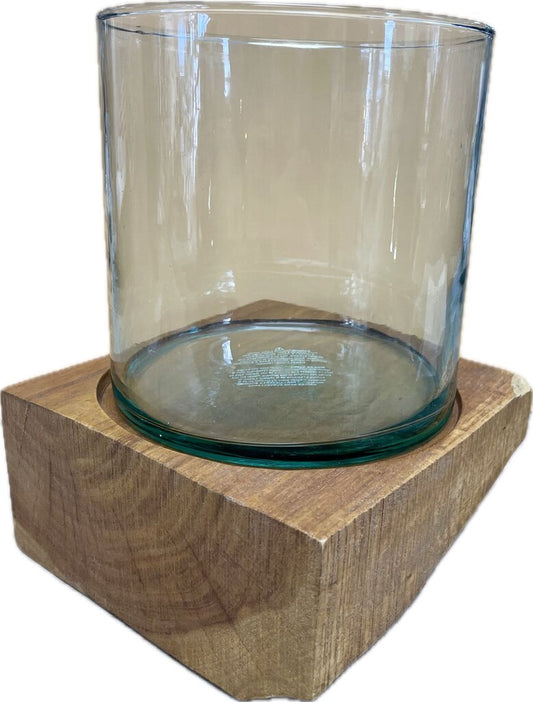 POTTERYBARN MADRE DE CACAO WOOD HURRICAN CANDLE HOLDER