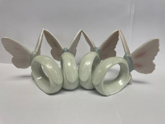 PORCELAIN BUTTERFLY NAPKIN RINGS SET OF 4