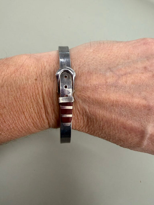 STERLING SILVER RED ENAMEL BELT BUCKLE BRACELET