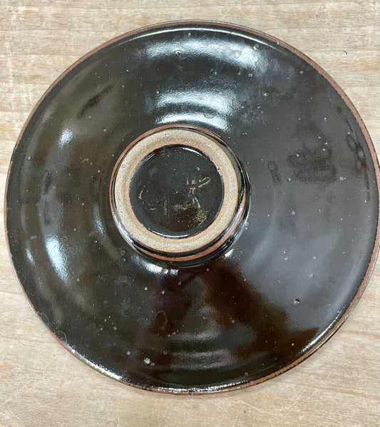 AQUA AND BLACL CERAMIC FLOWER FROG 8"