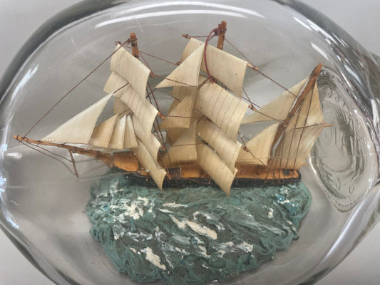 VINTAGE DIMPLE BOAT IN A BOTTLE 8X5.5