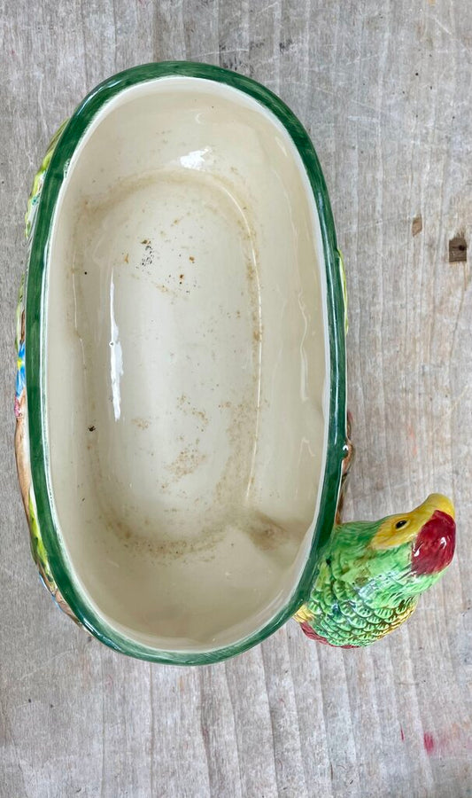 VINTAGE WHIMSICAL OVAL REGENCY PARROT TROPICAL CACHE POT PLANTER
