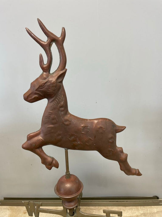 RARE VINTAGE COPPER AND BRASS DEER STAG WEATHERVAVE AND WIND INDICATOR