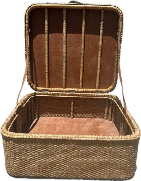 LARGE VINTAGE MALAYSIAN WICKER TRUNK TABLE