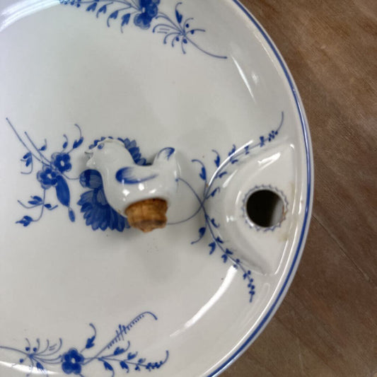 RARE CHANTILLY LIMOGES FRANCE BLUE AND WHITE FLORAL PORCELAIN WARMER DISH