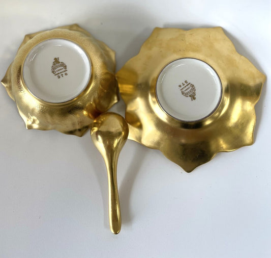 RARE LOTUS CONDIMENT NUT DISH 24 KT GOLD PLATED