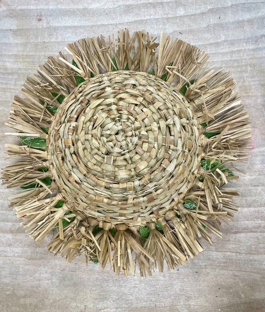 HAND WOVEN BASKET WITH CERAMIC LEAFS