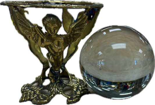 VINTAGE BRASS CHERUB CRYSTAL ORB DECOR
