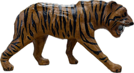 VINTAGE LEATHER TIGER WITH GLASS EYES