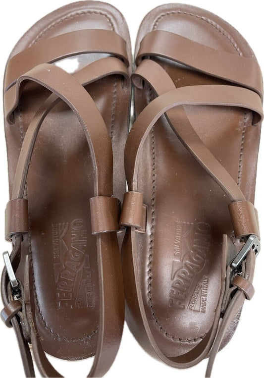 SALVATORE FERRAGAMO LEATHER NOSTRO SANDALS BROWN (NEW) UK SIZE10