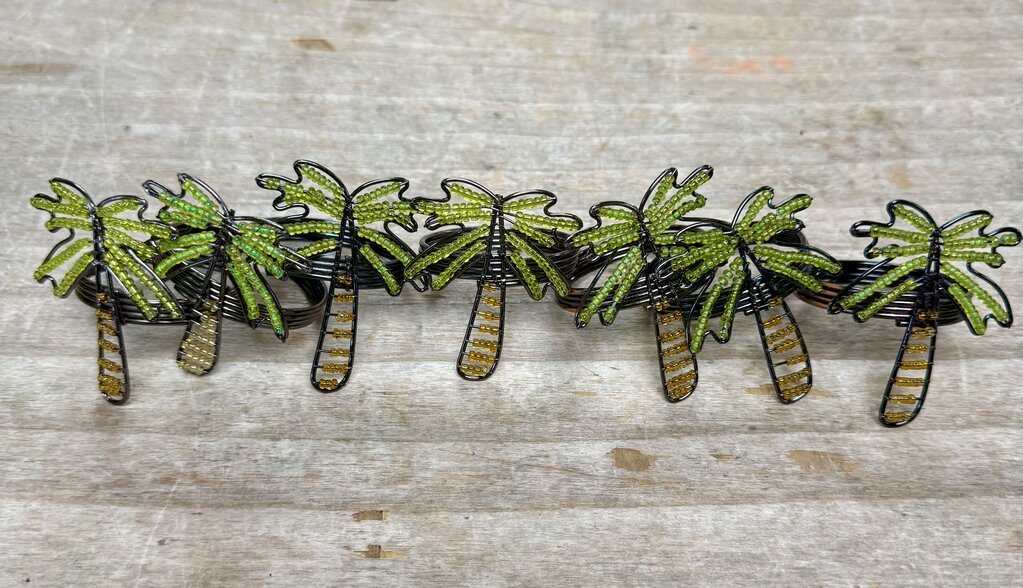 BEADED PALM TREE NAPKIN RING HOLDER SET OF 7