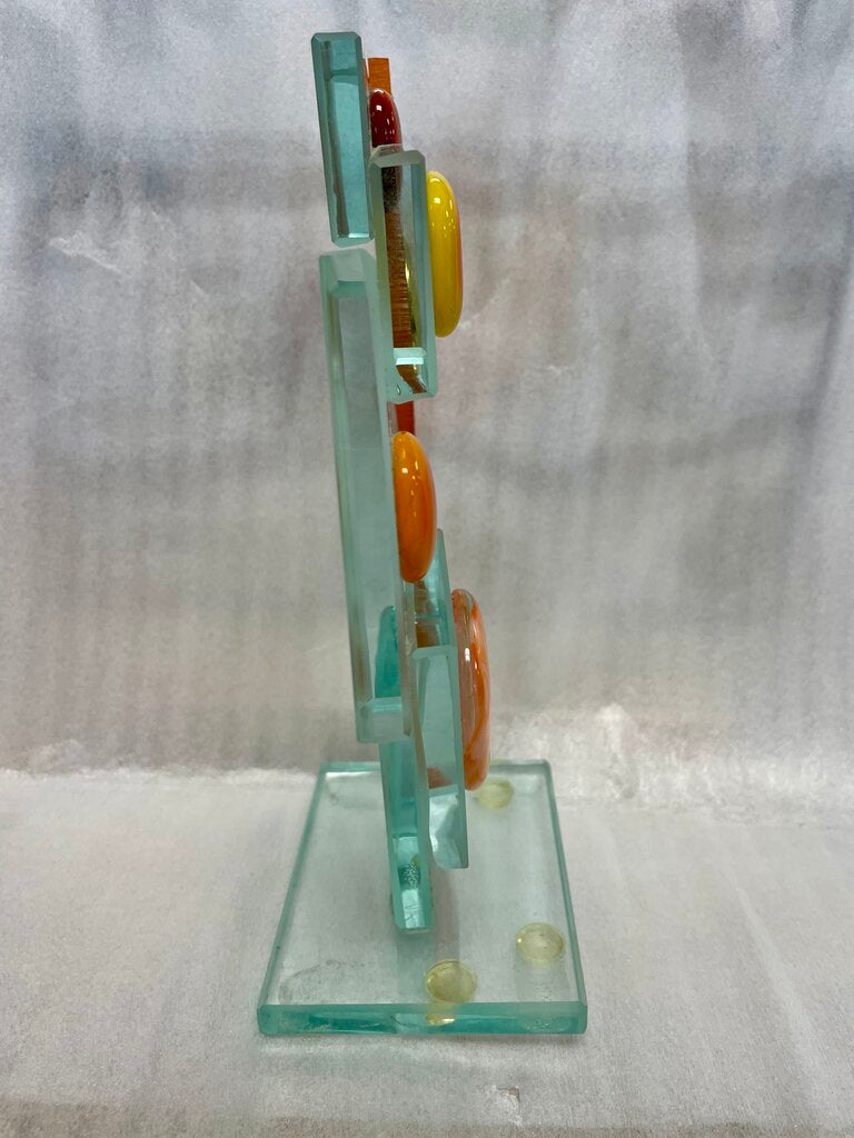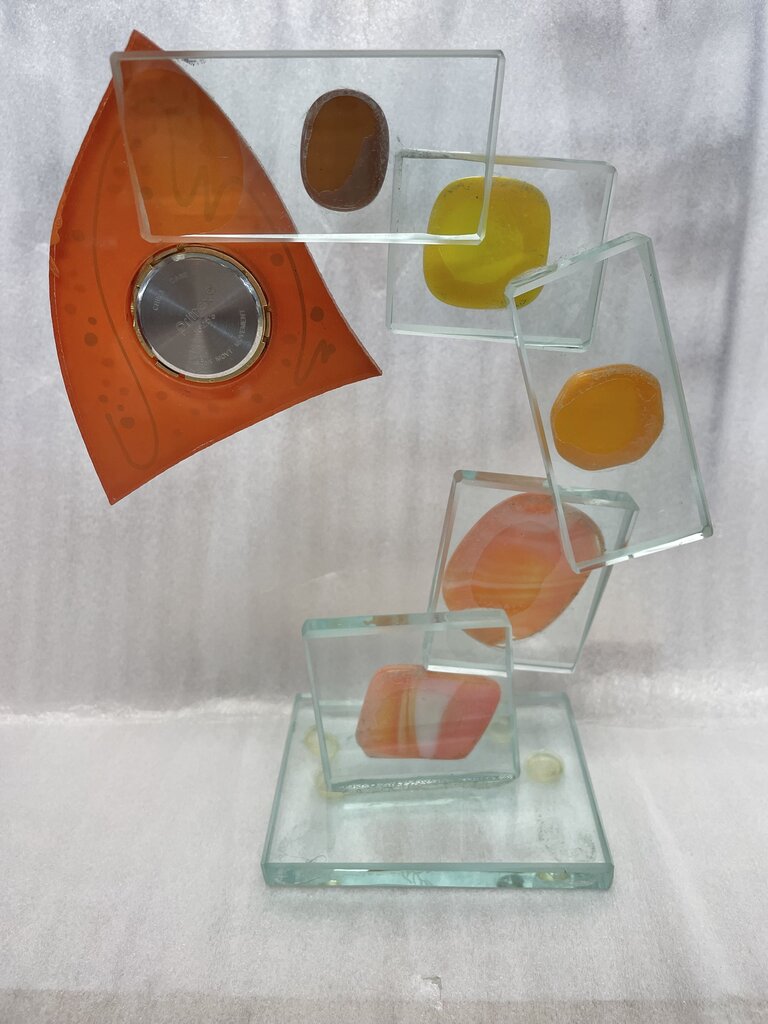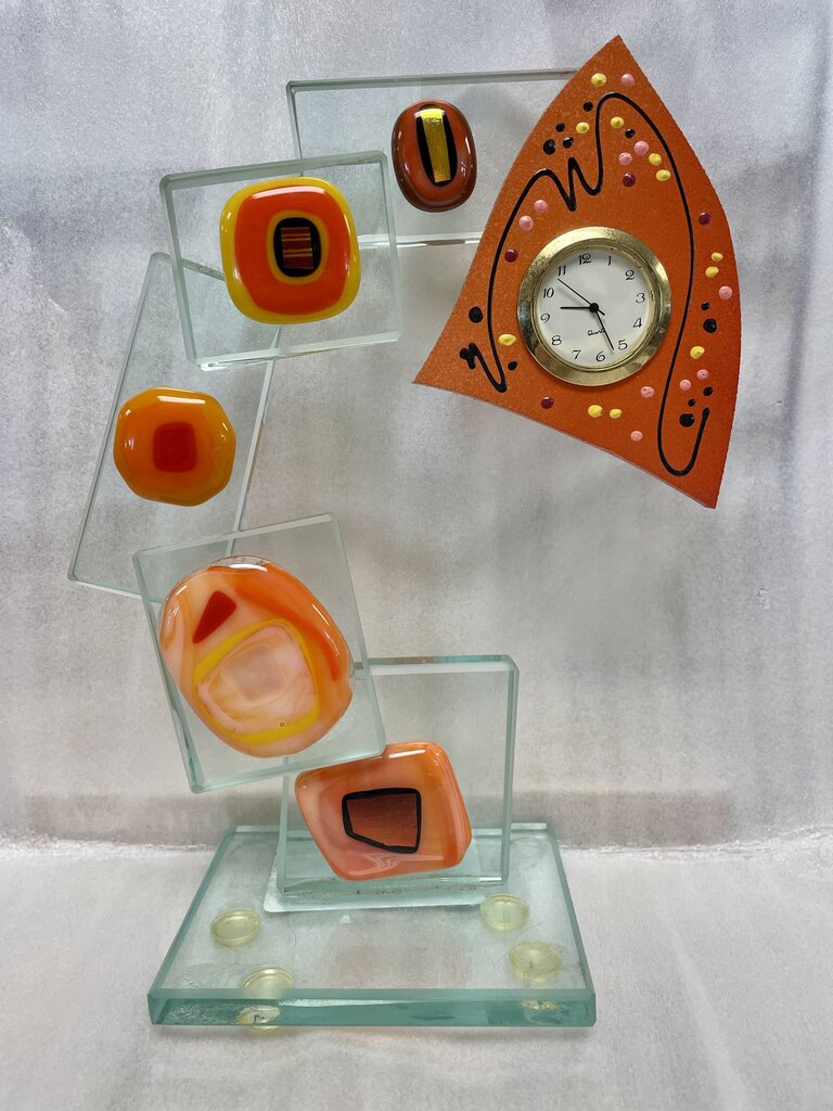 LUCITE FUSED GLASS CLOCK ART SIGNED
