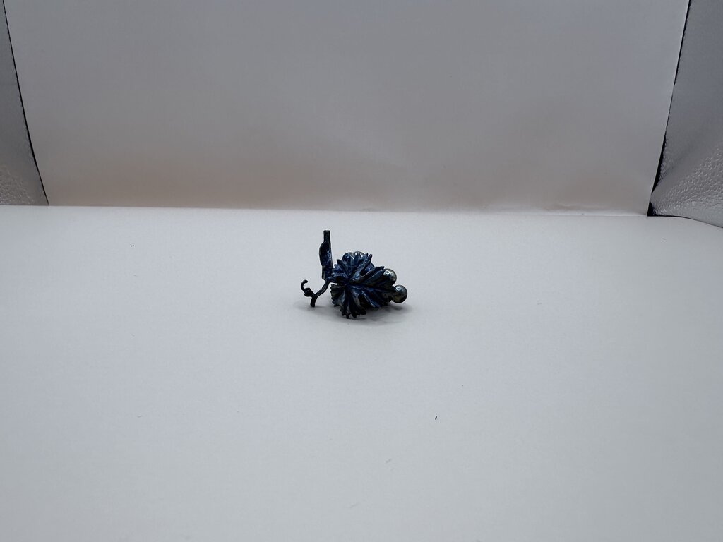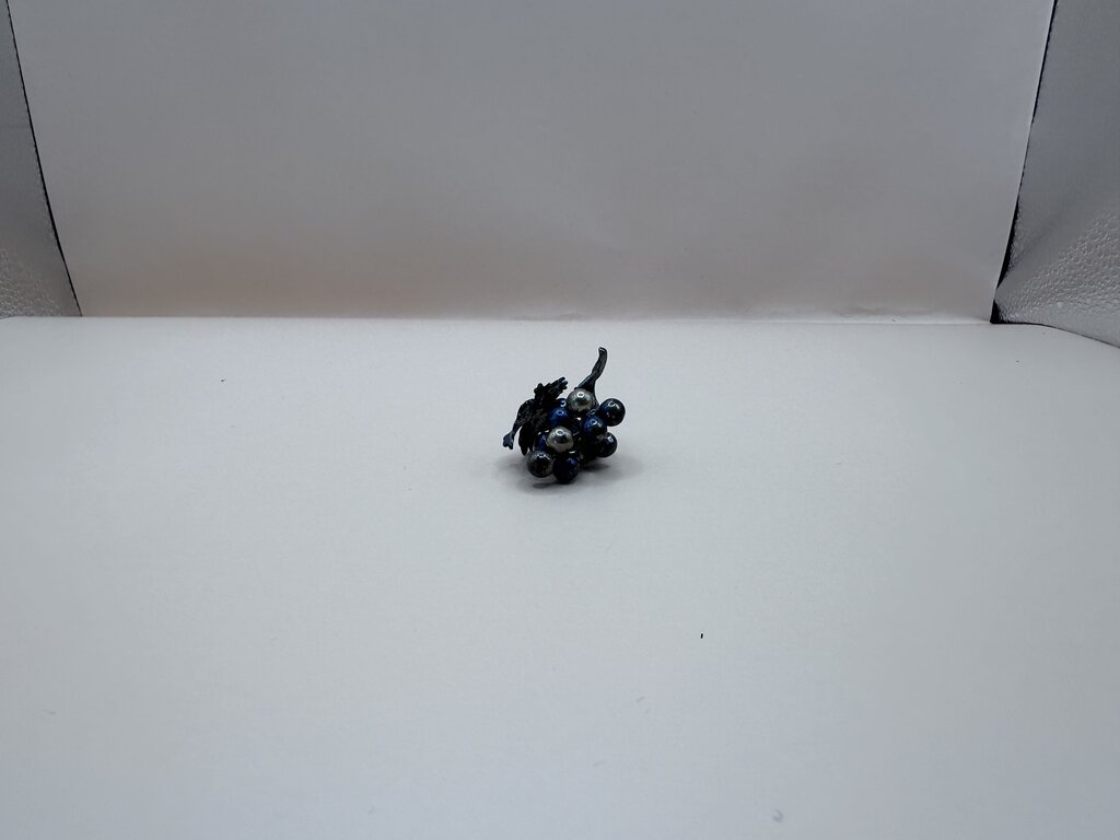 Add a touch of vintage charm with this detailed silver-tone grape cluster sculpture. Crafted in metal with a rich patina, this piece features: A bunch of grapes with realistic texture A sculpted leaf and vine tendril detail Compact size – ideal for display on shelves, trays, or in decorative bowls Perfect for collectors of vintage fruit decor, metal miniatures, or unique kitchen accents. Condition: Pre-owned with natural aging and wear. Tarnish adds to the vintage look. No major damage. Ships quickly and securely.